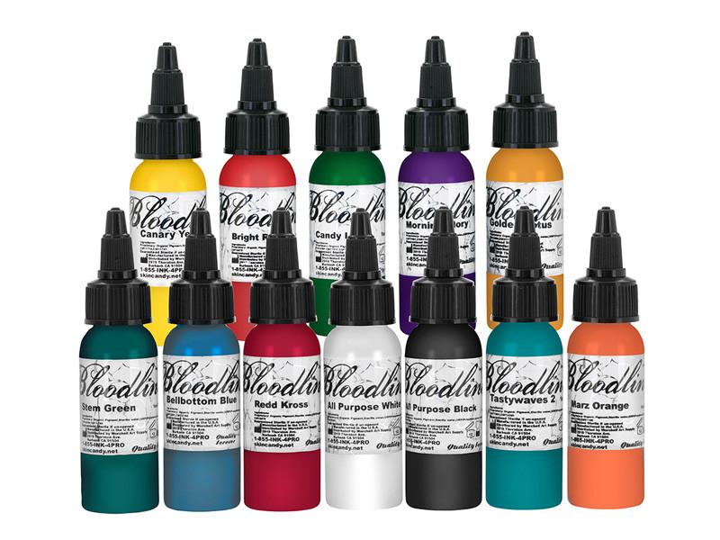 Bloodline Tattoo Ink - All Purpose Black - 1oz Bottle 1075 1075 1 Count Only 15 left in stock - order soon. This ink is Blacklight sensitive so it will glow under a UV light. Skin Candy Bloodline Tattoo Ink Set Best 7 Selling Colors 12oz Free 20 Sta.
